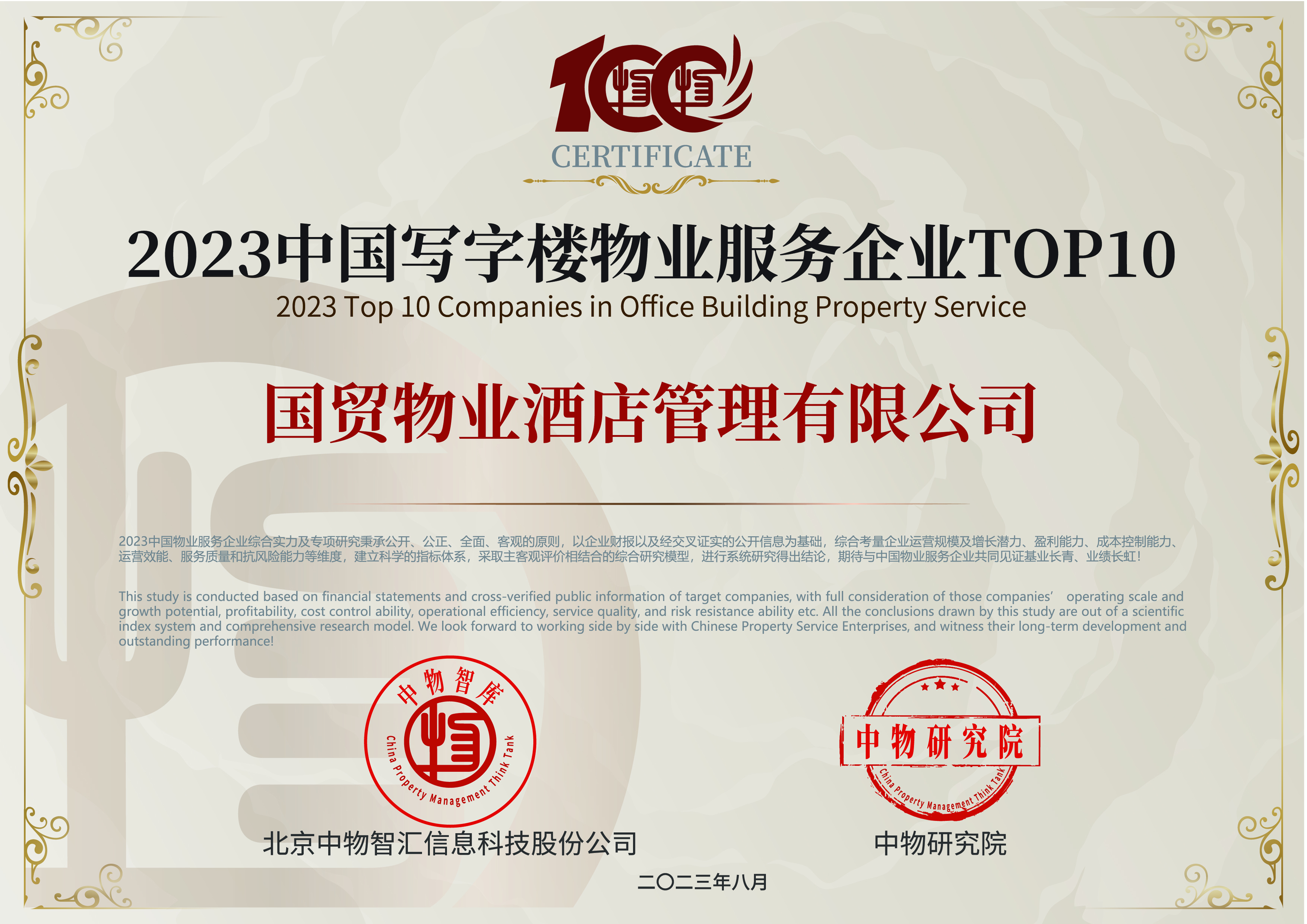 8月10日,由中物智庫(kù)、中物研究院主辦的“夯基聚力 行則將至”2023中國(guó)物業(yè)綜合實(shí)力百?gòu)?qiáng)企業(yè)研究發(fā)布會(huì)在昆明隆重舉行,國(guó)貿(mào)物業(yè)酒店管理有限公司榮獲“2023中國(guó)物業(yè)品牌影響力百?gòu)?qiáng)企業(yè)”稱號(hào)及“2023中國(guó)寫字樓物業(yè)服務(wù)企業(yè)TOP10”獎(jiǎng)項(xiàng)。