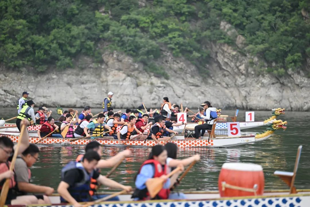 參觀學(xué)習(xí)后,團(tuán)員青年們來(lái)到雁棲湖水上運(yùn)動(dòng)中心,在專(zhuān)業(yè)教練的培訓(xùn)和指導(dǎo)下,學(xué)習(xí)中華傳統(tǒng)龍舟競(jìng)渡文化和劃龍舟技巧,并進(jìn)行了激烈的龍舟比賽。在比賽中,各支隊(duì)伍通力協(xié)作、奮勇?tīng)?zhēng)先,展現(xiàn)了拼搏進(jìn)取的國(guó)貿(mào)體育精神和國(guó)貿(mào)青年朝氣蓬勃的精神面貌。