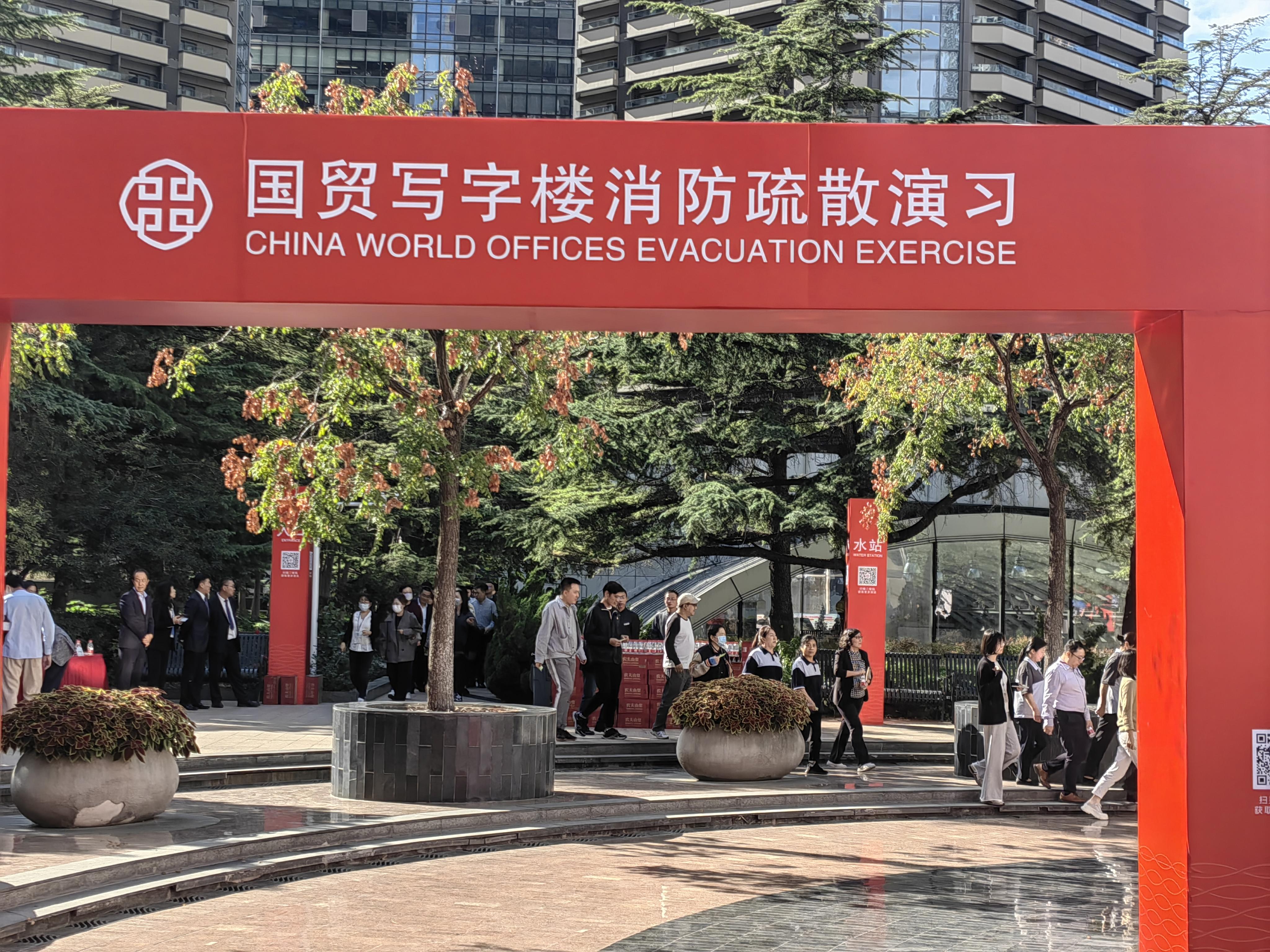 為檢驗(yàn)火警應(yīng)急預(yù)案的可行性和大廈消防設(shè)施功能,不斷提高各部門的應(yīng)急處置能力和與消防救援隊(duì)伍的協(xié)調(diào)作戰(zhàn)能力,使租戶客人熟悉掌握大廈內(nèi)部疏散設(shè)施及疏散路線,最大限度減少火災(zāi)事故帶來的損失,有效提升大廈整體防御火災(zāi)能力。10月13日,國貿(mào)中心按消防演習(xí)計(jì)劃進(jìn)行寫字樓區(qū)域消防演習(xí),國貿(mào)項(xiàng)目部全力助力演習(xí)開展。