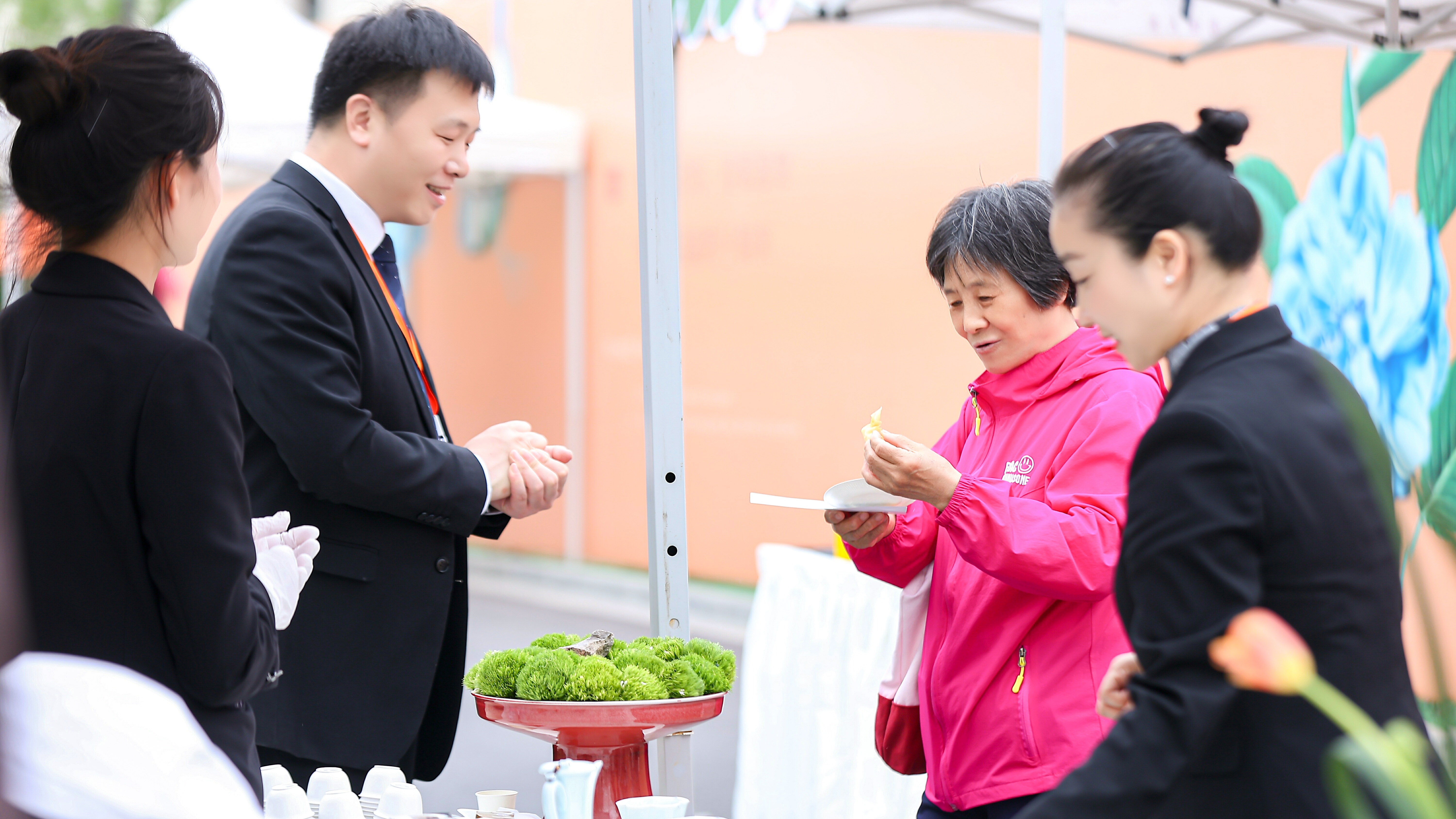 琳瑯滿目的商品,親切的吆喝,鄰里間的一聲聲問候,一切都熟悉而溫暖。市集活動(dòng)當(dāng)天,國貿(mào)物業(yè)攜手新國貿(mào)飯店三五堂餐廳、國貿(mào)商城金悅餐廳等27家企業(yè)單位在市集中提供服務(wù),各個(gè)攤位依次排開,共同為業(yè)主們帶來了集餐飲美食、實(shí)惠購物、兒童娛樂以及專屬福利等三十余種豐富多彩的便民服務(wù)。